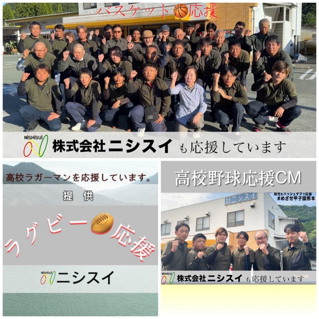 ニシスイでは高校生の一生懸命なプレーに感動と元気をもらっています。だから、応援したい! 夏の全国高校野球大会(KAB熊本朝日放送) RKKカップラグビー大会 (RKK熊本放送) ウィンターカップバスケット大会(KAB熊本朝日放送)でオンエアーされました。